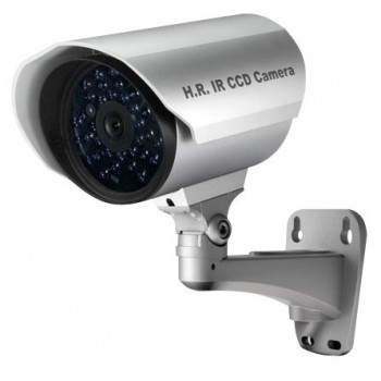 Cámara a color de rayos infrarrojos de alta resolución con sensor de imagen H.R. a color CCD de 1/3" de larga duración. Diseñadas para el funcionamiento de vigilancia durante las 24 horas. Cableado resguardado en Bracket para prevención de maltrato o daños.