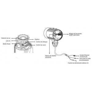 Conectividad Ethernet de 10/100 Mbps, RJ-45 Soporta ONVIF Protocolos: IPv4, IPv6, TCP/IP, HTTP, HTTPS, UPnP, RTSP/RTP/RTCP, IGMP, SMTP, FTP, DHCP, NTP, DNS, DDNS, PPPoE, CoS, QoS, SNMP y 802.1X